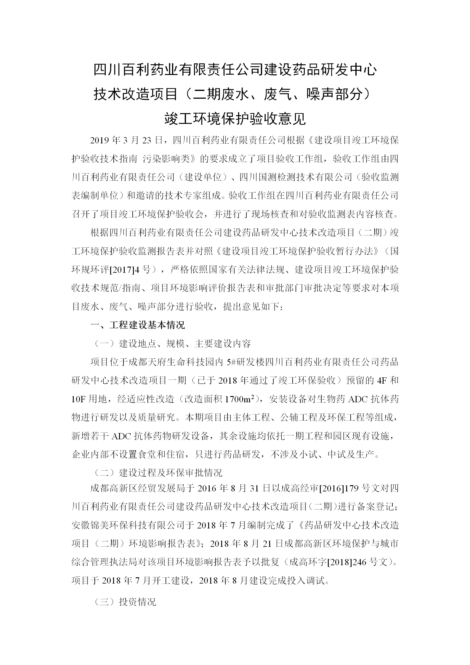 根据《国务院关于建设项目竣工环境保护管理条例的决定》以及环保部《建设项目竣工环境保护验收暂行办法》的公告(国环规环评[2017]4号)现将《四川开云app官方在线登录入口-开云(中国)有限责任公司药品研发中心技术改造项目(二期)竣工环保验收监测报告》及验收意见公示如下: